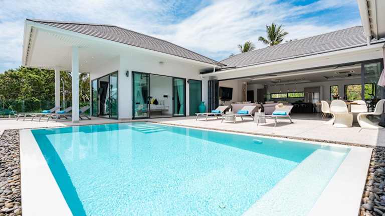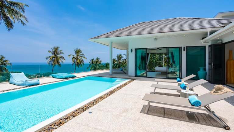 Stella Villa - Lamai Seaview bietet Übernachtungsmöglichkeiten mit kostenlosem WLAN, Klimaanlage und einem privat nutzbaren Aussenpool. Die Villa besitzt 6 Schlafzimmer und 6 Badezimmer und ist mit einer modernen Einrichtung ausgestattet, dazu gehören Bettwäsche, Handtücher und ein Flachbild-TV mit Satellitenkanälen. Ein eigener Garten und eine Terrasse mit Meerblick runden das Angebot ab.
