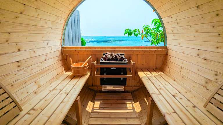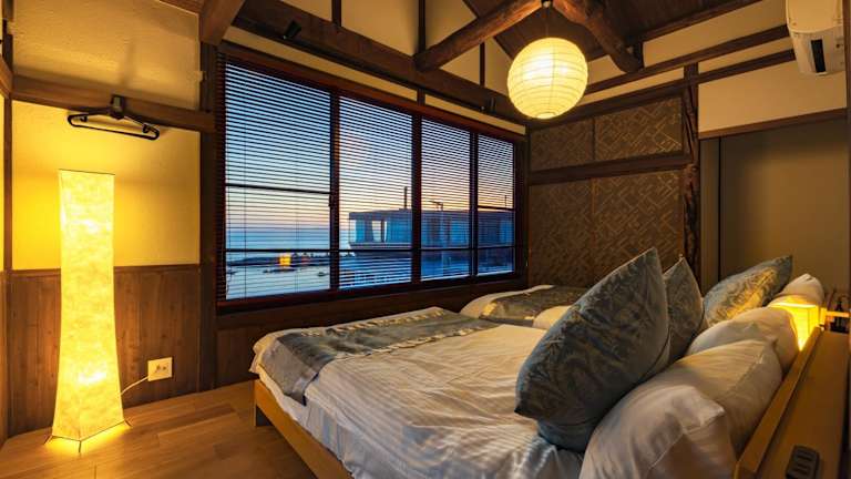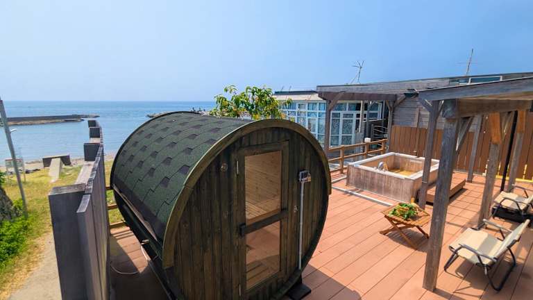 StellaStoria HAYAMA bietet Übernachtungsmöglichkeiten in einem Ferienhaus mit offenem Badezimmer und Whirlpool. Gäste können die Terrasse mit Meerblick nutzen und profitieren von kostenlosem Wifi.