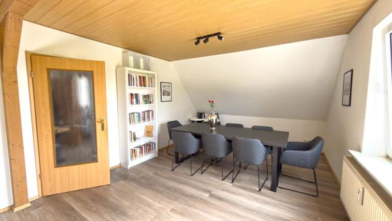 Die Ferienwohnung besteht aus drei Schlafzimmern und einem Wohnzimmer. Sie verfügt über eine voll ausgestattete Küche, die mit einem Kühlschrank und einer Kaffeemaschine eingerichtet ist. Zur Wohnung gehört zudem ein Badezimmer mit Dusche. Handtücher und Bettwäsche werden bereitgestellt. Allergikerfreundliche Zimmer sind ebenfalls verfügbar.