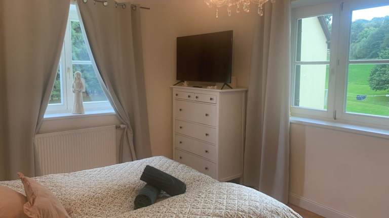 Das Apartment Sternenhimmel Gamlitz FeWo 3 SZ in Gamlitz ist der perfekte Ort für einen erholsamen Urlaub inmitten der Natur. Mit einem schönen Garten, kostenfreiem WLAN und einer Terrasse mit Stadtblick bietet das Apartment alle Annehmlichkeiten, die Sie benötigen. Nutzen Sie die Privatparkplätze und den Fahrradverleih, um die Umgebung zu erkunden. Die voll ausgestattete Küche und der Essbereich ermöglichen es Ihnen, Ihre eigenen Mahlzeiten zuzubereiten und das Apartment bietet auch Bettwäsche und Handtücher. In der Umgebung können Sie wandern, radfahren und die nahegelegenen Bahnhöfe erreichen.
