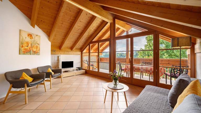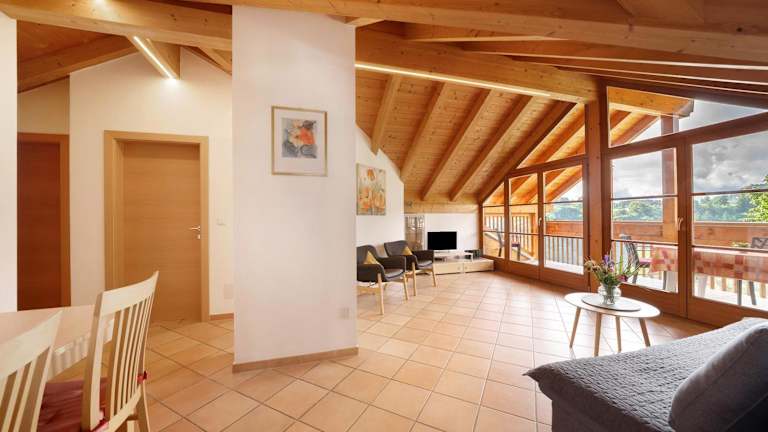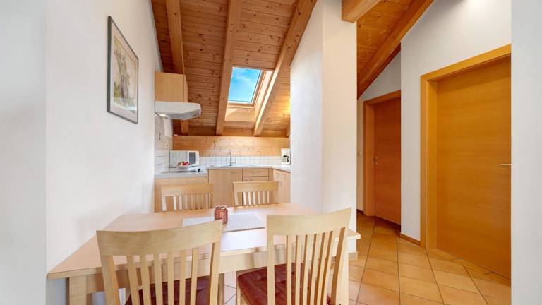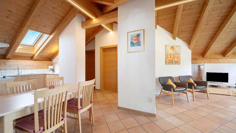 Die Ferienwohnung verfügt über 2 Schlafzimmer, ein Wohnzimmer, einen TV sowie eine gut ausgestattete Küche mit Kühlschrank und Geschirrspüler. Ein Badezimmer mit Dusche ist vorhanden. Zudem stehen Handtücher und Bettwäsche zur Verfügung. Ein Balkon mit Bergblick rundet die Ausstattung ab.