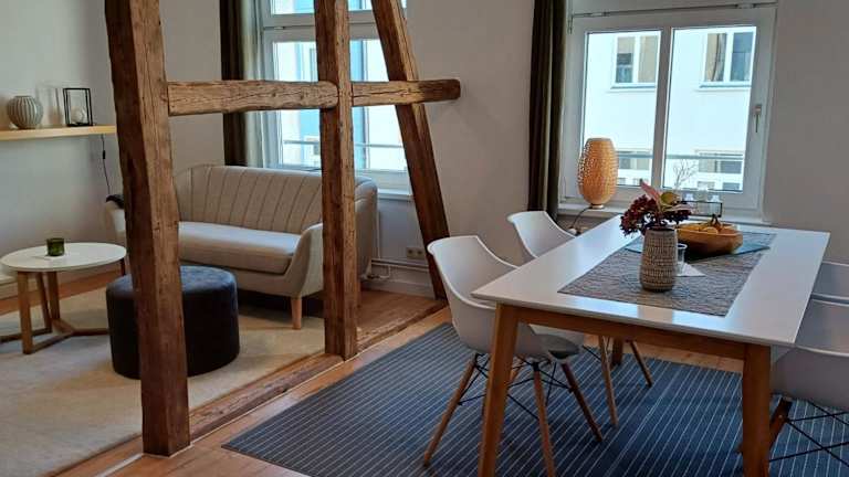 Die Unterkunft Stilvolle Whg im Zentrum ist zentral in Schwerin gelegen, nur 600 m vom Hauptbahnhof Schwerin und 800 m von der Sport- und Kongresshalle Schwerin entfernt. In der näheren Umgebung finden sich interessante Orte wie das Mecklenburgische Staatstheater Schwerin, das Staatliche Museum Schwerin sowie das Schweriner Schloss. Die Gegend bietet zahlreiche Möglichkeiten zum Wandern und Velofahren.