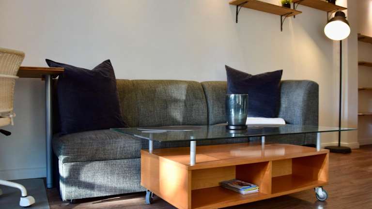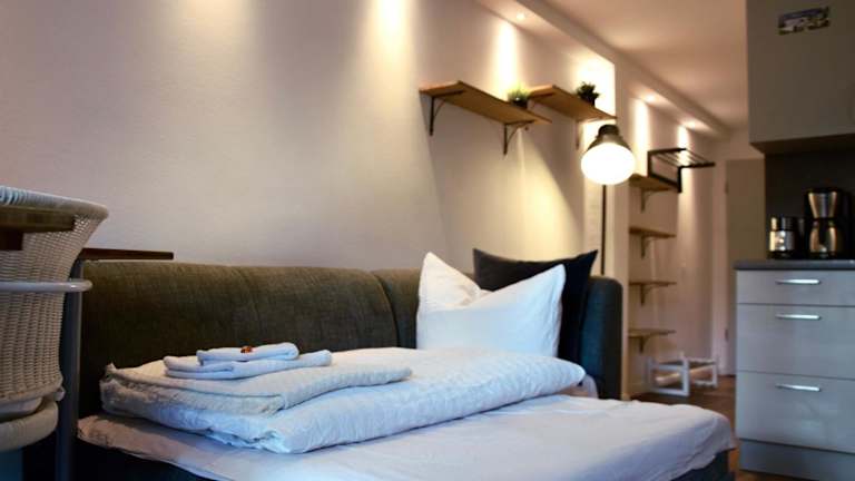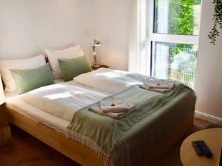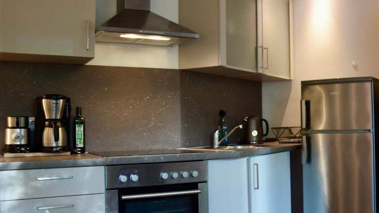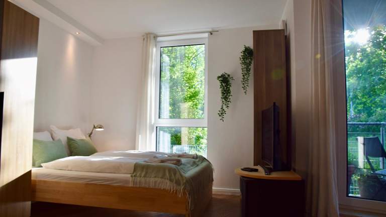 Die Ferienwohnung hat ein Schlafzimmer, ein Wohnzimmer und eine gut ausgestattete Küche mit Kühlschrank und Ofen. Ein Flachbild-TV sorgt für Unterhaltung. Der Balkon lädt zum Entspannen ein.