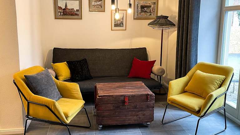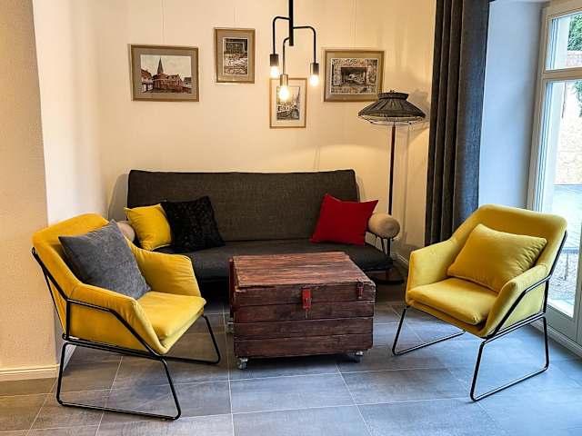Die stilvolle, zentrale Ferienwohnung Bocksbruecke bietet Übernachtungsmöglichkeiten in einer heimeligen Atmosphäre und überzeugt durch ihre zentrale Lage. Ein kostenloser Privatparkplatz steht zur Verfügung.