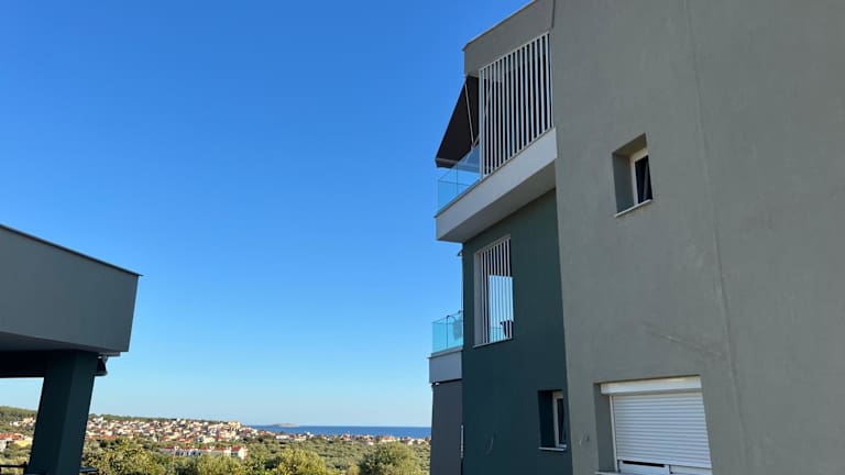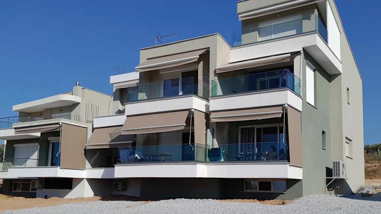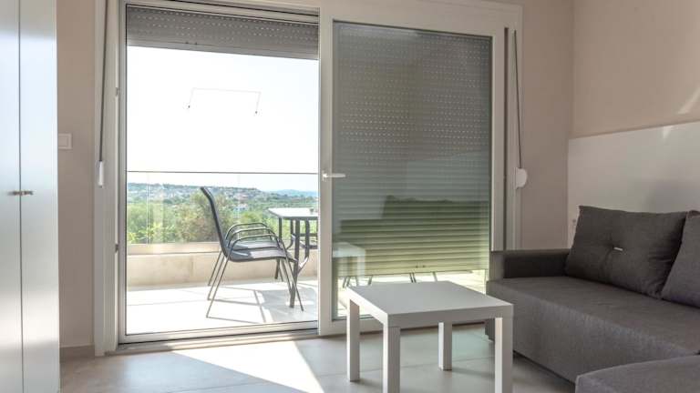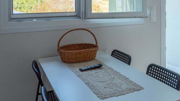 Alle Wohneinheiten sind mit einem Balkon mit Meerblick ausgestattet. Zusätzlich verfügen sie über eine Küche mit Kühlschrank und Herdplatte sowie ein eigenes Badezimmer mit Dusche.