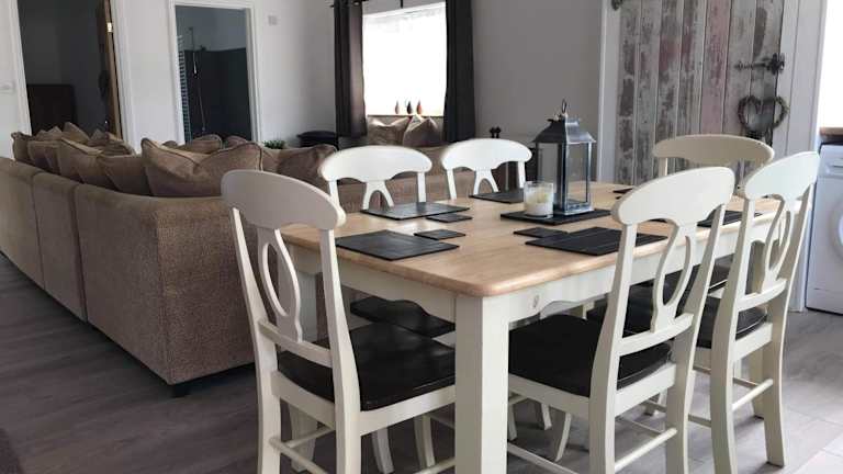 Das Ferienhaus verfügt über 2 Schlafzimmer, eine Küche mit Kühlschrank und Ofen, sowie einen Flachbild-TV und einen Sitzbereich. Es bietet zudem ein Badezimmer mit Dusche. Handtücher und Bettwäsche werden bereitgestellt.