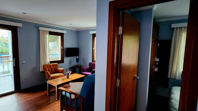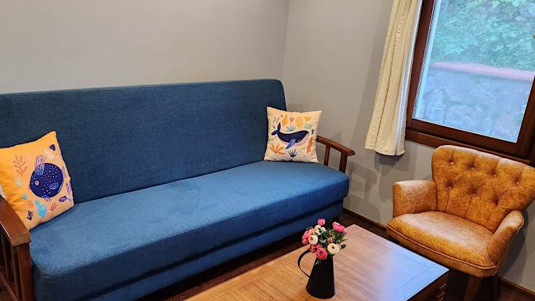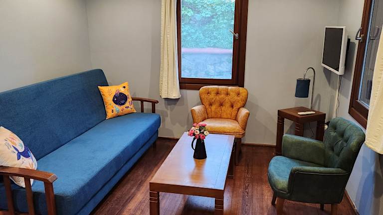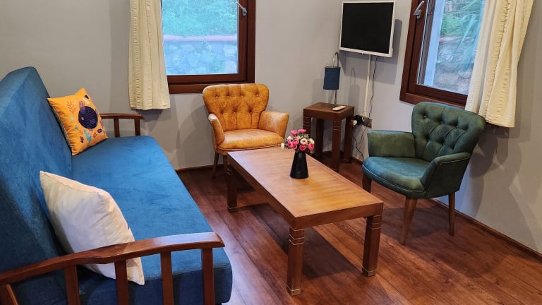 Jede Wohneinheit im Stone House Hotel hat einen Balkon mit Gartenblick, einen Satelliten-Flachbild-TV, Sitzmöglichkeiten, eine gut ausgestattete Küchenzeile sowie ein eigenes Badezimmer mit Dusche, kostenlosen Pflegeprodukten und einem Haartrockner.