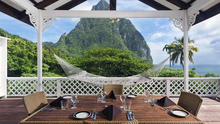 Das Resort befindet sich im Dorf Soufriere, nur wenige Minuten von der Stadt entfernt. Es liegt in der Nähe eines Sandstrands und bietet einen kostenlosen Bustransfer zum Jalousie Beach. Öffentliche Verkehrsmittel ermöglichen die Erreichbarkeit der vulkanischen, schwefelhaltigen Quellen in etwa 5 Minuten. Der internationale Flughafen ist rund 45 Fahrminuten entfernt.