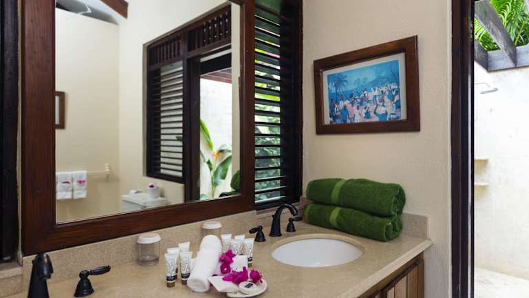 Die Villen sind mit Klimaanlage, Balkon oder Terrasse, Badewanne und Dusche ausgestattet. Die Zimmer verfügen über verschiedene Bettgrössen, eine Minibar, einen Safe sowie eine Tee- und Kaffeemaschine. Ein entspannendes Raumklima wird durch Ventilatoren unterstützt. Im Badezimmer stehen Bademäntel, Haartrockner und Kosmetikartikel zur Verfügung. Es sind Nichtraucherzimmer vorhanden.