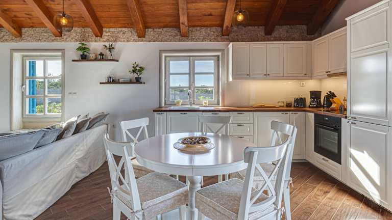 In der voll ausgestatteten Küche der Unterkunft haben die Gäste die Möglichkeit, ihre eigenen Mahlzeiten zuzubereiten. Zudem ist Essenslieferung in die Unterkunft möglich, und es werden Speisen für spezielle Ernährungsbedürfnisse auf Anfrage angeboten. Weitere Verpflegungsmöglichkeiten sind nicht aufgeführt.