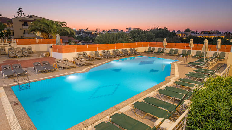 Das Hotel liegt in Mália, direkt am Strand. Die Entfernung zum Flughafen beträgt etwa 31,8 km, zum Strand sind es ca. 300 m und ins Stadtzentrum sind es etwa 800 m. Der nächste Golfplatz ist ca. 14,4 km entfernt.