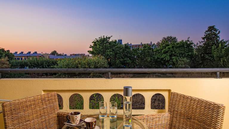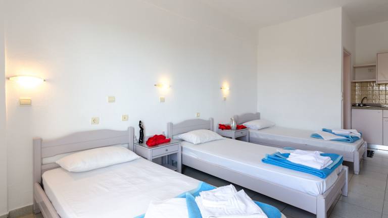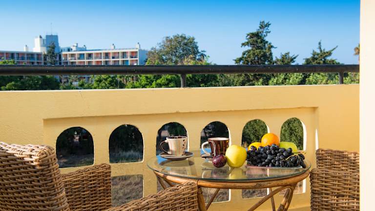 Die Zimmer sind mit einer Klimaanlage, die individuell regelbar ist, ausgestattet und bieten eine Kochnische mit Kühlschrank sowie eine Tee-/Kaffeemaschine. Die meisten Zimmer verfügen über einen Balkon, ein Badezimmer mit Dusche oder Badewanne sowie einen Haartrockner. Zusätzlich bieten die Zimmer einen Safe, eine Minibar, ein Telefon und einen TV. WLAN ist vorhanden.