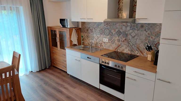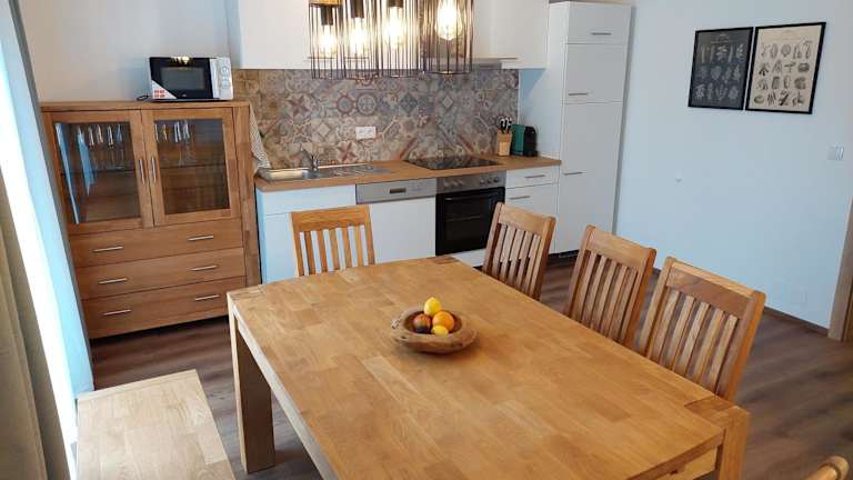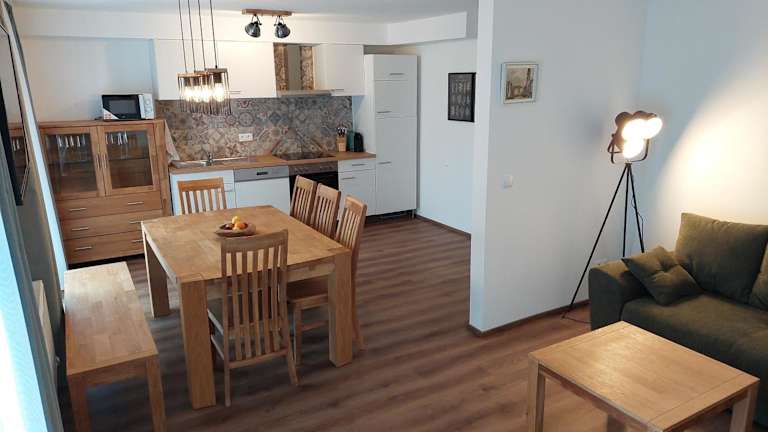 Die Unterkünfte sind komfortabel und mit Fliesenböden ausgestattet. Jedes Apartment verfügt über einen Satelliten Flachbild-TV, eine gut ausgestattete Küche mit Kühlschrank, Geschirrspüler, Ofen, Mikrowelle, Kaffeemaschine und Wasserkocher sowie einem eigenen Badezimmer mit Dusche. Eine Terrasse ergänzt das Angebot und lädt zum Entspannen ein.