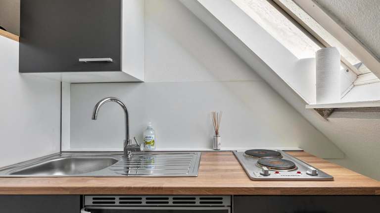 Die Ferienwohnung verfügt über ein Schlafzimmer, eine voll ausgestattete Küche mit Kühlschrank und Herdplatte sowie ein Badezimmer mit Dusche und kostenlosen Pflegeprodukten. Zur Einrichtung gehören Handtücher und Bettwäsche. Die Unterkunft ist ideal für Gäste, die in einer Heimeligkeit wohnen möchten.