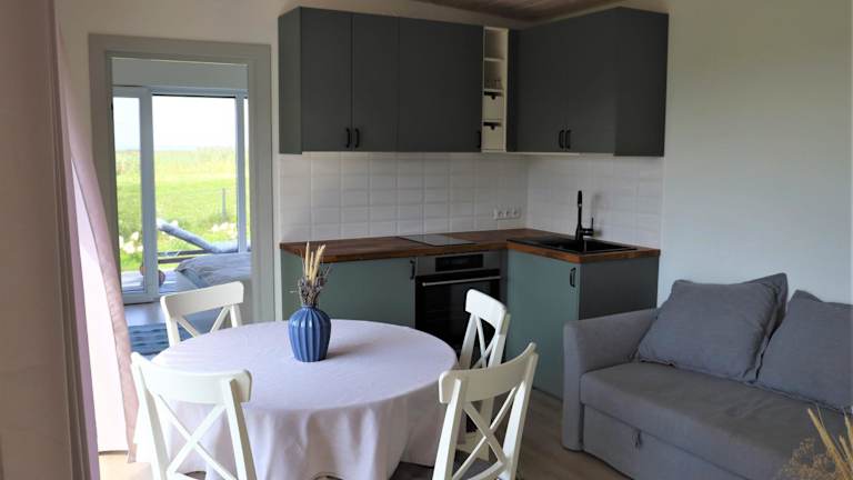 Das Ferienhaus verfügt über ein Schlafzimmer, ein Wohnzimmer sowie eine gut ausgestattete Küche mit Kühlschrank und Ofen. Es sind Nichtraucherzimmer vorhanden, und Haustiere sind auf Anfrage erlaubt.