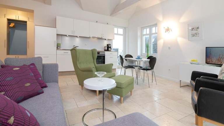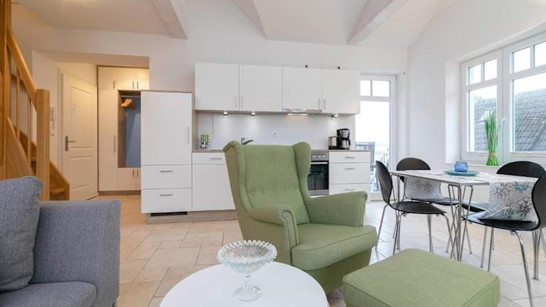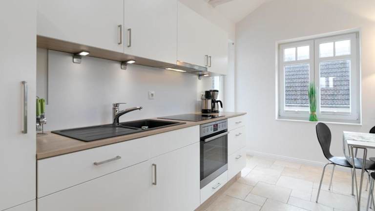 Die Ferienwohnung verfügt über eine gut ausgestattete Küche mit Kühlschrank, Geschirrspüler und Ofen. Informationen zur Verpflegung oder speziellen Essensangeboten sind nicht vorhanden.