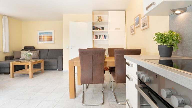 Die Ferienwohnung umfasst ein Schlafzimmer, ein Wohnzimmer mit TV sowie eine gut ausgestattete Küche, die mit einem Kühlschrank und Geschirrspüler versehen ist. Zudem beinhaltet die Unterkunft 1 Badezimmer mit Dusche. Ein optionales Bettwäschepaket steht gegen Aufpreis zur Verfügung. Handtücher und Bettwäsche können alternativ selbst mitgebracht werden. Haustiere sind nicht gestattet, und die Unterkunft ist eine Nichtraucherunterkunft.