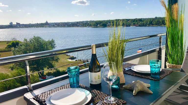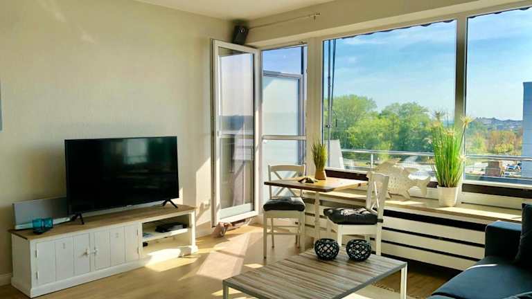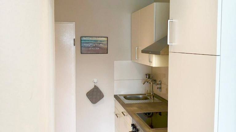 Die Ferienwohnung verfügt über einen Balkon mit Meerblick, einen Kabel Flachbild-TV und eine gut ausgestattete Küche mit Kühlschrank, Geschirrspüler und Ofen. Zudem bietet das Badezimmer eine Badewanne und einen Haartrockner.