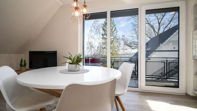 Die Unterkunft Strandhaus-3-OG liegt direkt am Strand und bietet einen schönen Seeblick. In der Nähe gibt es zahlreiche Möglichkeiten für Wassersport und Angeln. Die Umgebung ist ideal für entspannende Ferien am Wasser.