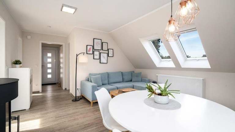 Das Strandhaus-3-OG ist eine heimelige Ferienwohnung, die sich durch ihre freundliche Atmosphäre und ihre Lage am Ufer auszeichnet. Die Ferienwohnung verfügt über einen Balkon, einen Garten und einen Kinderspielplatz, der insbesondere für Familien geeignet ist. Die Unterkunft ist Nichtraucher und bietet zahlreiche Annehmlichkeiten für einen angenehmen Aufenthalt.