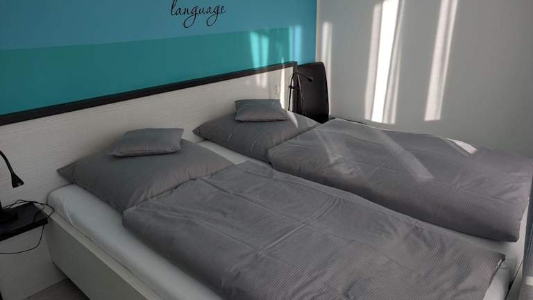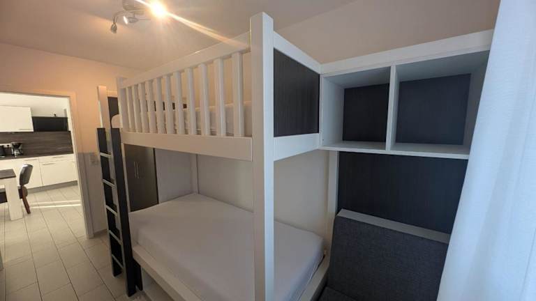 Die Ferienwohnung umfasst zwei Schlafzimmer, ein Wohnzimmer sowie eine gut eingerichtete Küche mit Kühlschrank und Geschirrspüler. Handtücher und Bettwäsche werden bereitgestellt. Allergikerfreundliche Zimmer sind verfügbar.