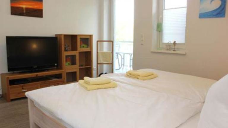Die Ferienwohnung verfügt über zwei Schlafzimmer sowie einen TV mit Satellitenkanälen. Die gut ausgestattete Küche beinhaltet einen Kühlschrank und einen Geschirrspüler. Ein Badezimmer mit einer Dusche ergänzt die Wohnung und bietet somit eine bequeme Ausstattung für die Gäste.