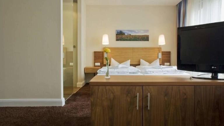 Die Doppelzimmer im Strandhotel Binz haben eine Grösse von 24 bis 26 m² und sind mit einem Zustellbett sowie einem Babybett (auf Anfrage und ohne Gebühr) ausgestattet. Weitere Annehmlichkeiten umfassen einen Safe, ein Telefon, kostenloses Internet über WLAN, Sat-TV, Dusche, WC, Bademantel und Föhn.