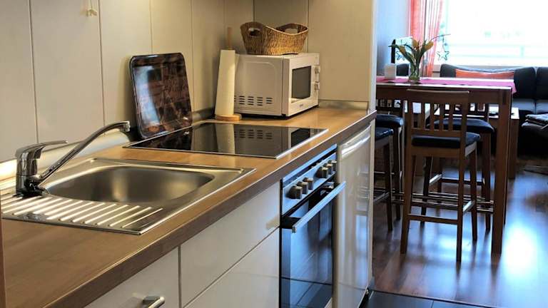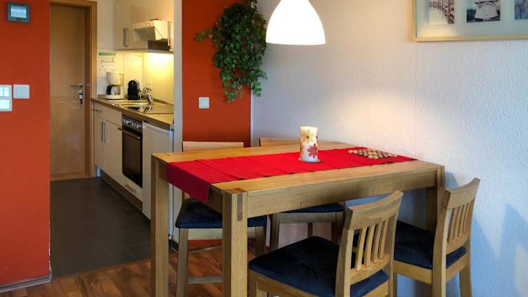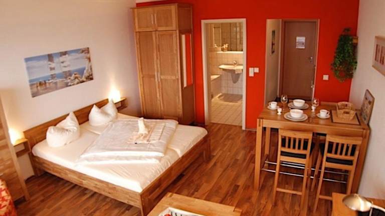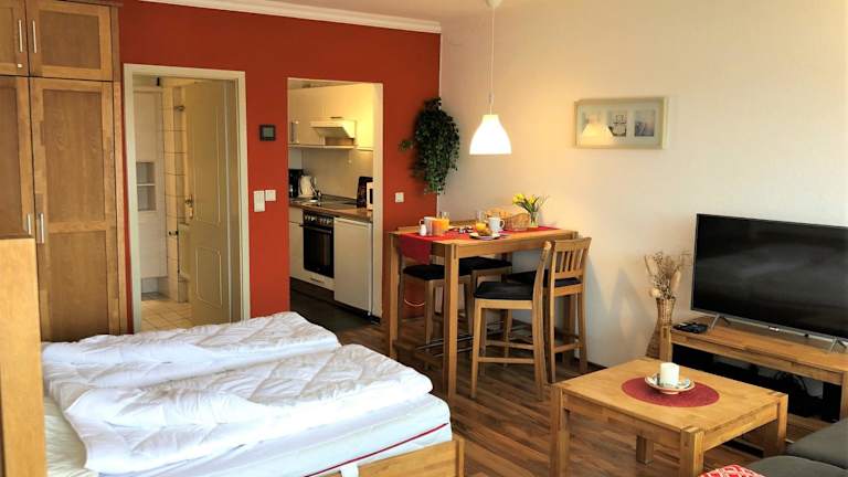 Die Ferienwohnung im Strandhotel Heiligenhafen umfasst ein Schlafzimmer und ist mit einem Flachbild-TV mit Kabelkanälen sowie einer voll ausgestatteten Küche eingerichtet. Die Küche beinhaltet einen Kühlschrank, einen Ofen, eine Waschmaschine, eine Mikrowelle und eine Herdplatte, um Gästen die Zubereitung eigener Mahlzeiten zu ermöglichen.