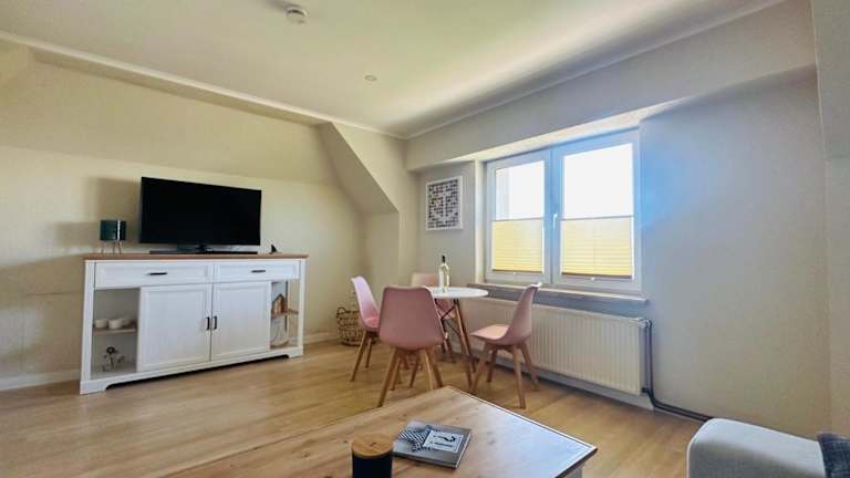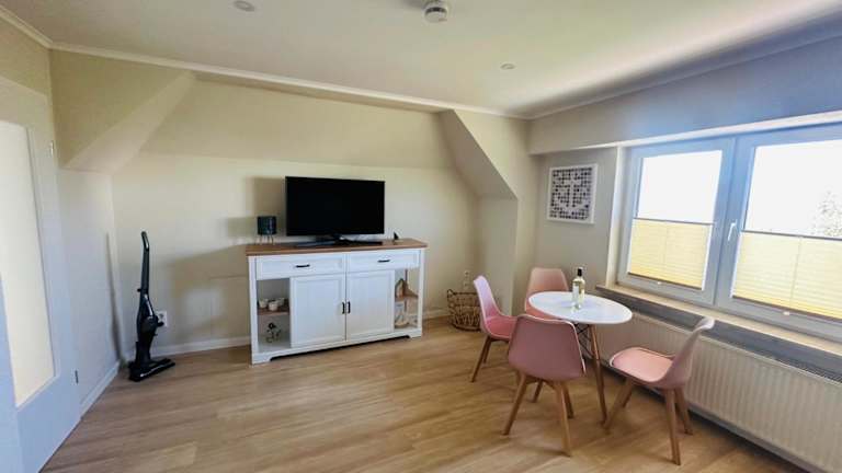 Die Ferienwohnung umfasst 1 Schlafzimmer, ein Wohnzimmer, ein Badezimmer mit Dusche sowie eine gut ausgestattete Küche mit Kühlschrank und Ofen. Zur Ausstattung gehören zudem ein Flachbild-TV, Handtücher und Bettwäsche. Eine Terrasse mit Meerblick sowie Grillmöglichkeiten sind ebenfalls vorhanden.