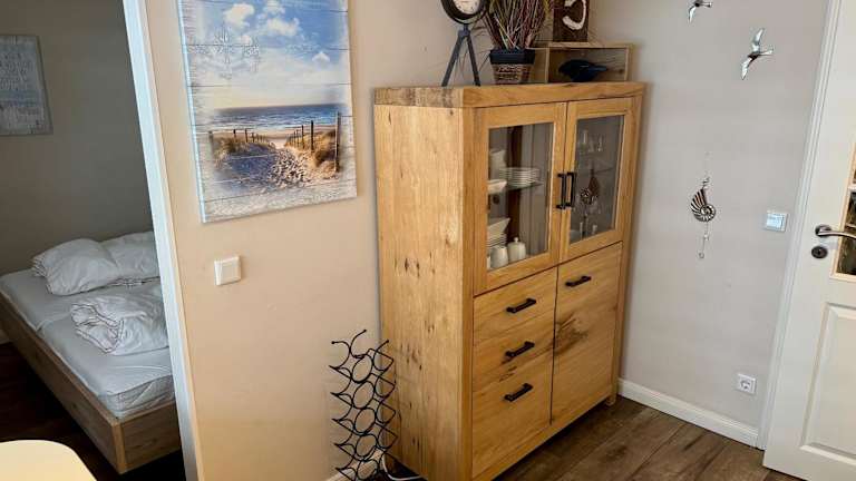 Die Ferienwohnung besteht aus einem Schlafzimmer und ist ausgestattet mit einem TV sowie einer voll eingerichteten Küche, in der ein Kühlschrank, ein Geschirrspüler, eine Waschmaschine, eine Mikrowelle und eine Herdplatte bereitstehen. Die Unterkunft bietet genügend Platz für eine erholsame Zeit.