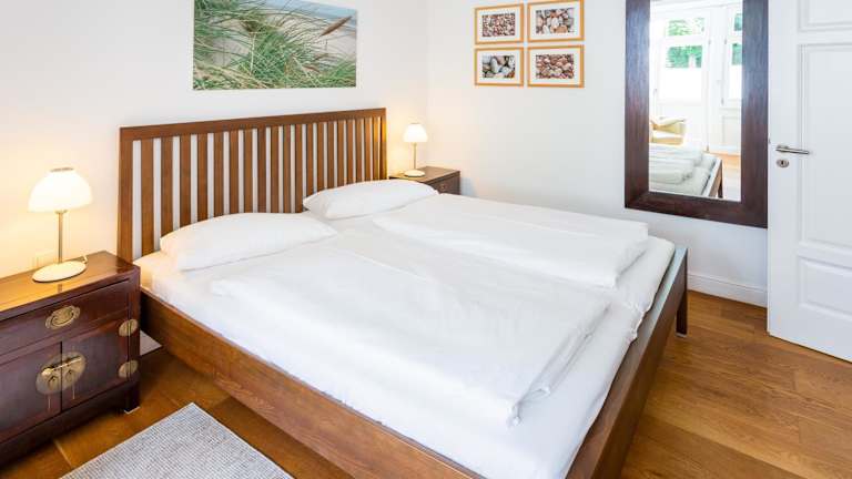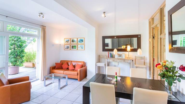 Die strandnahe und moderne Ferienwohnung mit Terrasse in der Villa Ravensberg bietet eine heimelige Atmosphäre und hochwertige Ausstattung. Die Ferienwohnung verfügt über ein Schlafzimmer, ein Wohnzimmer sowie eine voll ausgestattete Küchenzeile, ideal für Selbstversorger.