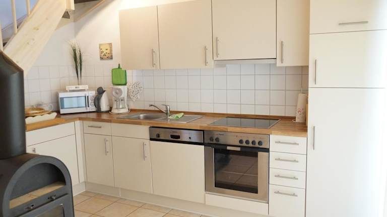 Die Unterkunft verfügt über eine voll ausgestattete Küche, die einen Kühlschrank, Geschirrspüler, Waschmaschine, Ofen und Mikrowelle beinhaltet. Verpflegungsmöglichkeiten sind nicht spezifiziert.