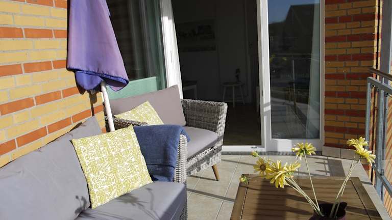 Die Ferienwohnung umfasst 1 Schlafzimmer und 1 Badezimmer. Zur Ausstattung gehören Bettwäsche, Handtücher, ein Flachbild-TV mit Kabelkanälen, ein Essbereich sowie eine voll ausgestattete Küchenzeile. Ein Balkon mit Meerblick sorgt für eine angenehme Atmosphäre.