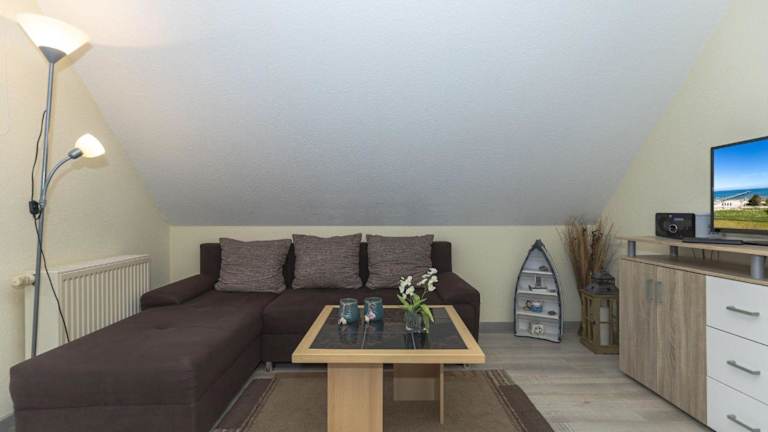 Die Ferienwohnung verfügt über 1 Schlafzimmer, ein Wohnzimmer mit TV, eine voll ausgestattete Küchenzeile mit Kühlschrank und Geschirrspüler sowie ein Badezimmer mit Dusche. Handtücher und Bettwäsche werden zur Verfügung gestellt.