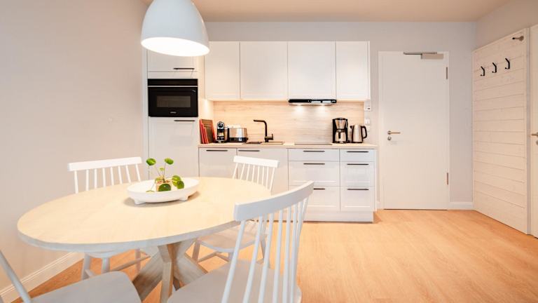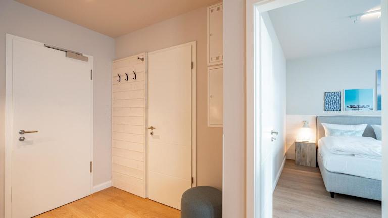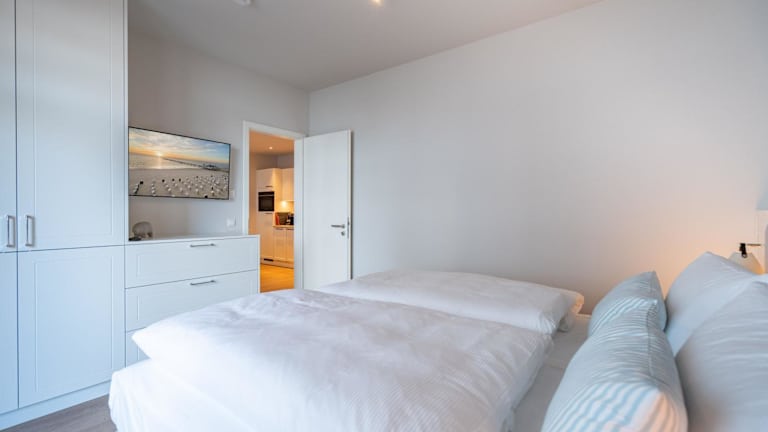 Die Ferienwohnung verfügt über 1 Schlafzimmer, eine Küchenzeile mit Kühlschrank und Geschirrspüler sowie ein Badezimmer mit Dusche, Haartrockner und Waschmaschine. Handtücher und Bettwäsche werden bereitgestellt.