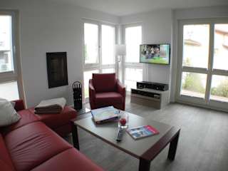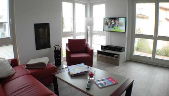 Die Ferienwohnung umfasst zwei Schlafzimmer, ein Wohnzimmer und eine gut ausgestattete Küche mit Kühlschrank und Geschirrspüler. Zur Unterhaltung stehen ein TV und ein DVD-Player bereit. Die Ausstattung umfasst auch einen Balkon.