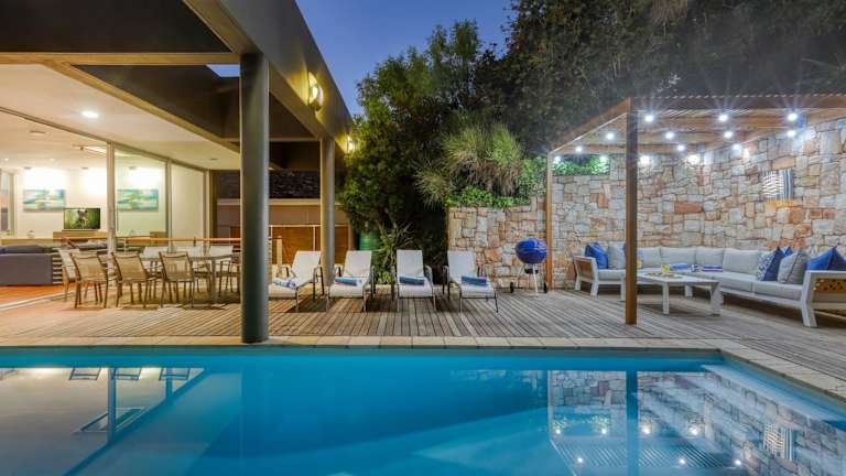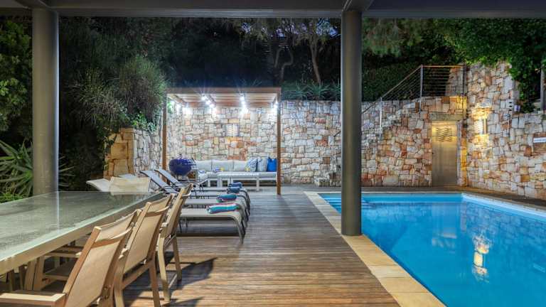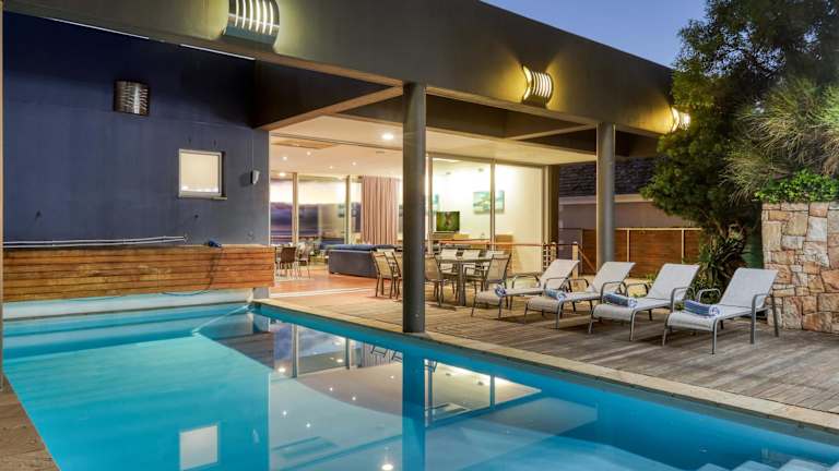 Strathmore House bietet einen herrlichen Meerblick und Übernachtungsmöglichkeiten mit einer Terrasse sowie einem Balkon. Die Unterkunft verfügt über einen Aussenpool und eine gemütliche Grillstelle. Besondere Merkmale umfassen einen Whirlpool und eine voll ausgestattete Küche.