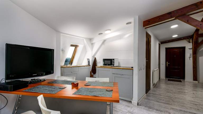 Das Strych Kościuszki - duży bietet eine gemütliche Gemeinschaftslounge und kostenloses Wifi. Die Unterkunft ist Nichtraucher und verfügt über Familienzimmer sowie die Möglichkeit für einen Express-Check-in und -Check-out. Zusätzliche Sicherheitsvorkehrungen wie ein 24-Stunden-Sicherheitspersonal, Videoüberwachung in Gemeinschaftsbereichen und Rauchmelder sorgen für die Sicherheit der Gäste. Die Unterkunft wird regelmässig desinfiziert und die Bettwäsche sowie Handtücher werden gemäss den Richtlinien der örtlichen Behörden gewaschen.