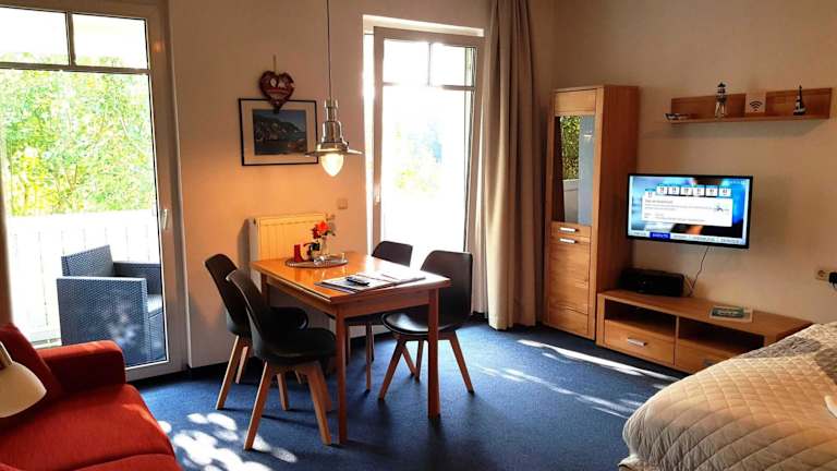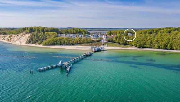 Das Studio 26, Residenz Seeblick mit seitlichem Meerblick befindet sich im Ostseebad Sellin, nur 300 m vom Strand und dem Hundestrand entfernt. Die Umgebung bietet eine wunderschöne Gartenlandschaft und direkte Nähe zur Küste.