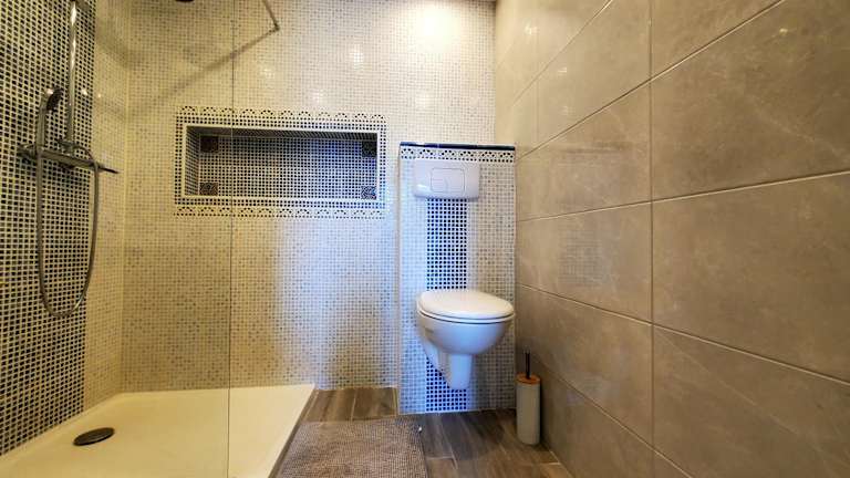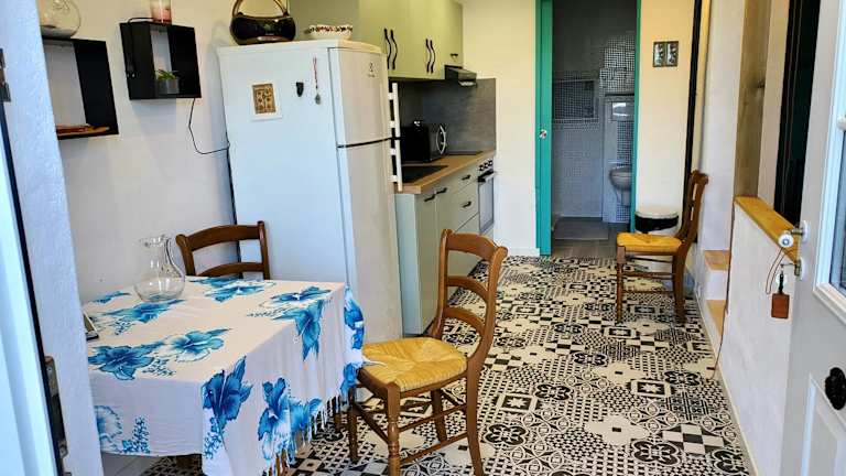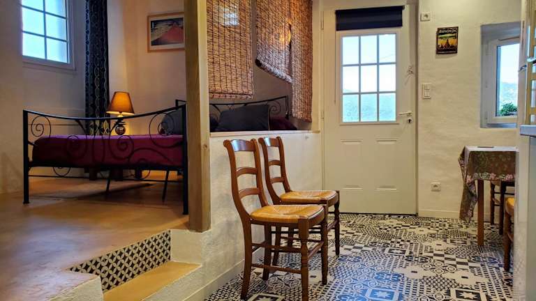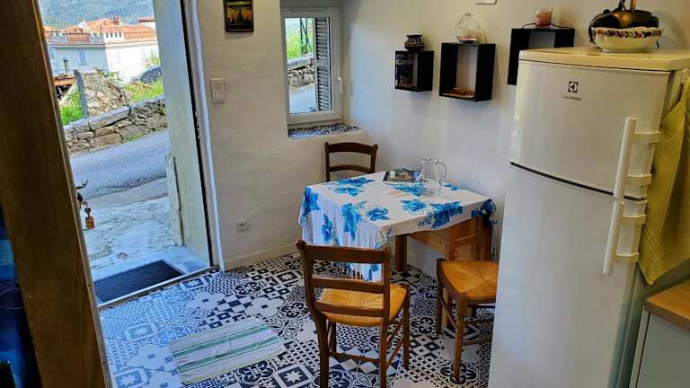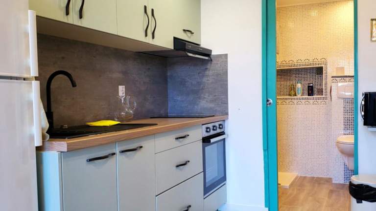 Das Studio ist eingerichtet mit 1 Schlafzimmer, einer Küche ausgestattet mit Kühlschrank und Ofen sowie 1 Badezimmer mit Dusche. Heimelige Details und die Ausstattung sorgen für einen angenehmen Aufenthalt.