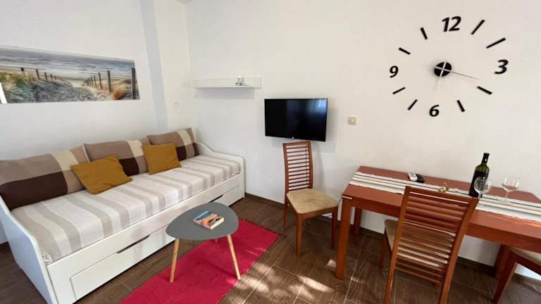 Studio apartman SAN 3 ist eine Ferienwohnung mit einer Terrasse und einem Garten, die Gästen eine heimelige Atmosphäre bietet. Diese Unterkunft wird von einem privaten Gastgeber geführt und ist ab 14:00 Uhr bis 23:00 Uhr für den Check-in geöffnet. Der Check-out sollte bis 10:00 Uhr erfolgen. Gäste werden in verschiedenen Sprachen wie Deutsch, Englisch, Italienisch und Kroatisch empfangen.