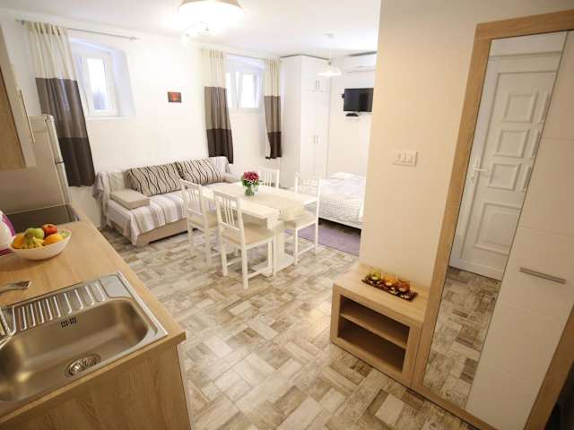Das Studio Apartment Laura ist ausgestattet mit einer Klimaanlage, einem Flachbild-TV und einem eigenen Badezimmer mit Dusche. Die Küche verfügt über einen Kühlschrank, Geschirrspüler, Ofen, Kaffeemaschine und Wasserkocher, sowie kostenlosen Pflegeprodukten und einem Haartrockner.