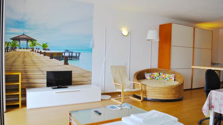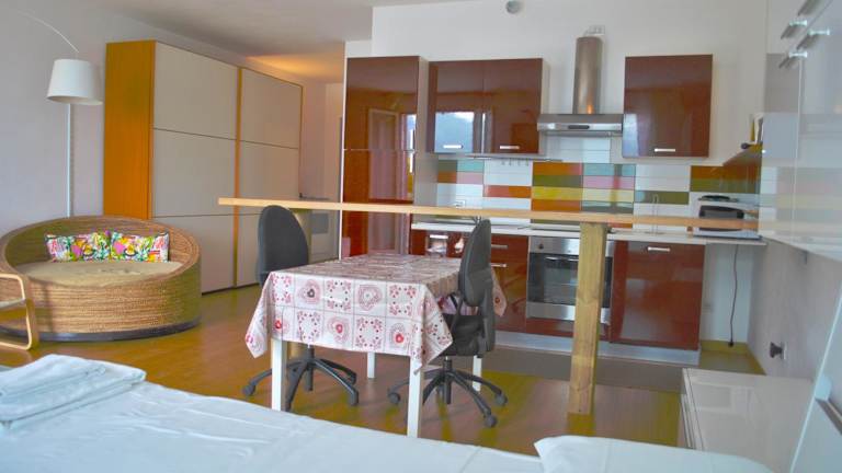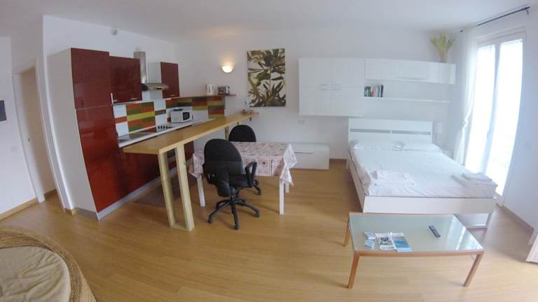 Das Studio Apartment Open Space with Terrace bietet Übernachtungsmöglichkeiten mit Bergblick sowie kostenlosem Wifi und einer kostenlosen Parkiermöglichkeit. Die Unterkunft zeichnet sich durch einen Balkon mit Seeblick aus.