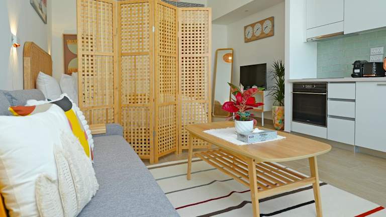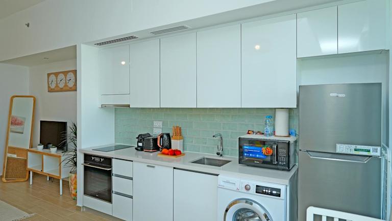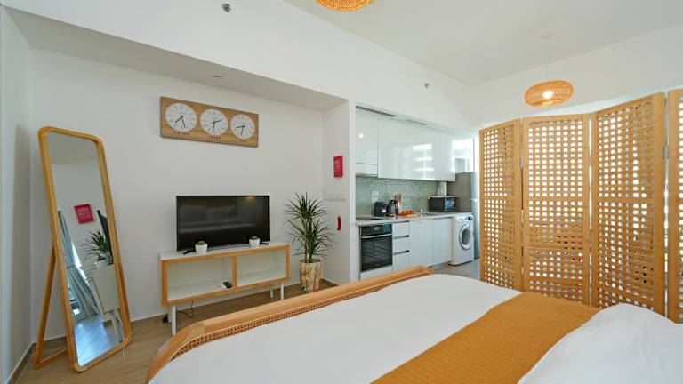 Das Studio Apartment beinhaltet 1 Schlafzimmer sowie ein Badezimmer mit Bidet. Zudem gibt es einen Flachbild-TV, einen Sitzbereich und eine voll ausgestattete Küche. In der Unterkunft sind Bettwäsche, Handtücher und Wäsche vorhanden, die nach den Richtlinien der örtlichen Behörden gewaschen werden.