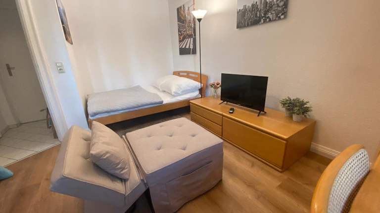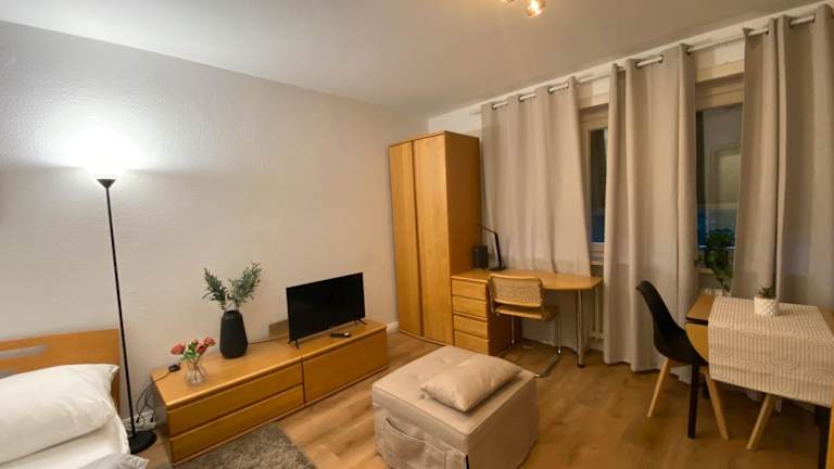 Das Studio-Apartment bietet eine moderne Unterkunft mit kostenlosen WLAN-Zugang und Stadtblick. Die minimalistisch eingerichtete Ferienwohnung ist mit Kabel-TV ausgestattet und bietet Zugang zu verschiedenen interessanten Orten in der Nähe, wie dem Frankfurter Hauptbahnhof, dem English Theatre und dem Goethe-Haus.