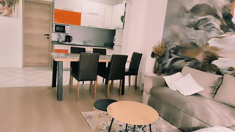 Die Studio Apartments Marija befinden sich nur 150 Meter vom Kiesstrand und 800 Meter vom Zentrum von Makarska entfernt. In der Nähe gibt es eine Bäckerei, einen Obstladen sowie verschiedene Restaurants, Cafés und einen Supermarkt innerhalb von 200 Metern. Die Umgebung ist bekannt für die lebendige Uferpromenade, die St.-Markus-Kathedrale und einen bunten Blumen- und Obstmarkt. Die Bushaltestelle liegt ebenfalls nur 200 Meter entfernt und der Busbahnhof Makarska ist in 800 Metern erreichbar. Der Fährhafen ist etwa 1 km von der Unterkunft entfernt. Die Altstadt von Split und der UNESCO-geschützte Diokletianspalast sind 58 km entfernt.