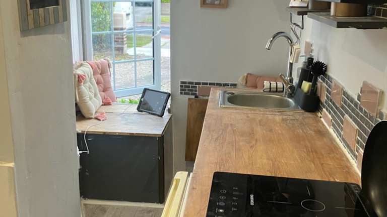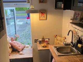 In der Küchenzeile sind eine Mikrowelle, ein Kühlschrank und ein Ofen vorhanden, die eine unabhängige Selbstversorgung ermöglichen. Lebensmittellieferungen sind auf Anfrage möglich.