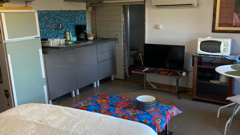 Das Studio verfügt über eine voll ausgestattete Küchenzeile mit Kühlschrank und Mikrowelle, sodass die Gäste ihre eigenen Mahlzeiten zubereiten können. Zusätzlich sind Bettwäsche und Handtücher vorhanden.