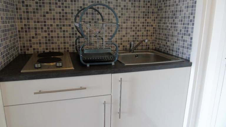 Das Studio hat 1 Schlafzimmer und ist mit einer Küchenzeile ausgestattet, welche einen Kühlschrank und einen Ofen umfasst. Ein Flachbild-TV und ein Sitzbereich sorgen für Bequemlichkeit. Das Badezimmer verfügt über eine Badewanne.
