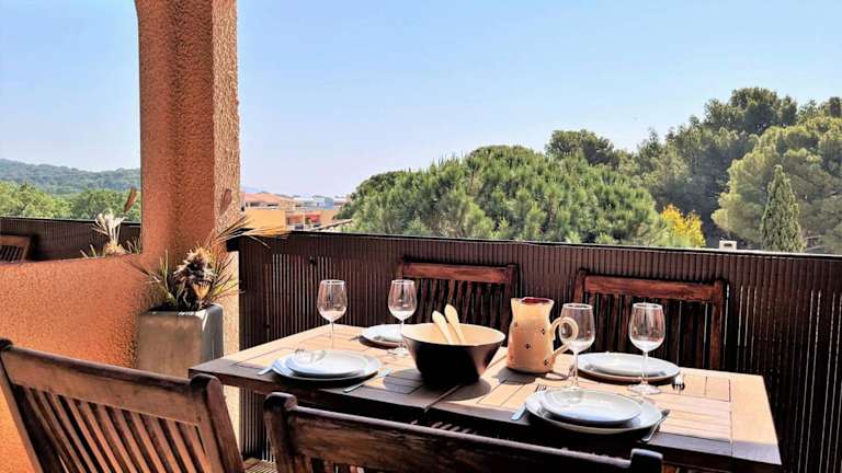 Die Unterkunft befindet sich in Bormes-les-Mimosas, 1,7 km von den Stränden Plage Pointe de Gouron und L'Anglade entfernt. Der Strand Plage de la Favière ist 1,1 km entfernt. Weitere Sehenswürdigkeiten in der Nähe sind das Château de Grimaud (33 km) und der Bahnhof Toulon (41 km). Der Flughafen Toulon-Hyères liegt 23 km entfernt.